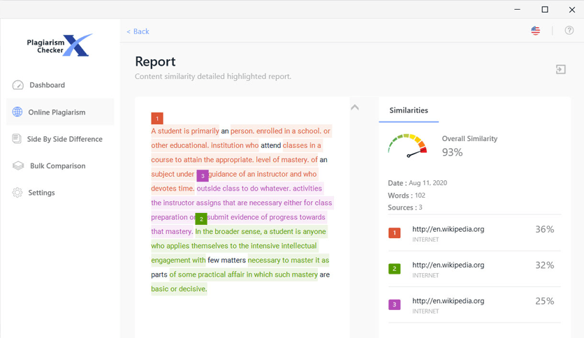 Unduh Gratis Plagiarism Checker X Pro untuk PC Windows dirancang untuk mendeteksi duplikat konten terhadap dokumen/teks yang Anda berikan, yang membantu pengguna untuk memeriksa keaslian konten mereka atas materi yang dijiplak.